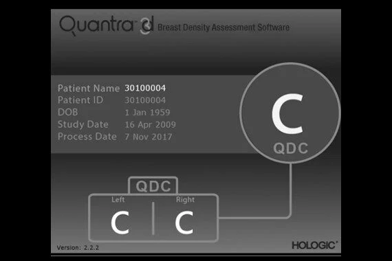 Quontra breast density assessment software provides an objective method for evaluating a patient’s breast density. This is crucial for women with dense breasts, as higher breast density is known to increase a woman’s risk of breast cancer.1